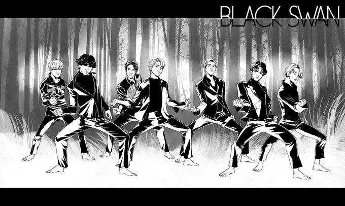 I've been chipping away at this one for awhile. Finally got it done today. Drew @bts_bighit @BTS_twt inspired by their song Black Swan. I decided to ink it in a high contrast style to emphasize the light and dark motif. #BTS #btsfanart #BlackSwan #MapOfTheSoul7