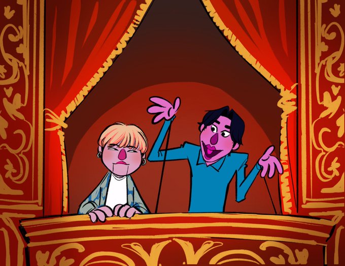 I was talking to @Marourin and she mentioned thinking that during Carpool Karaoke Jin and Yoongi were basically Statler and Waldorf from The Muppets. So I drew them as muppets. #GetWellSoonYoongi #btsfanart #bts