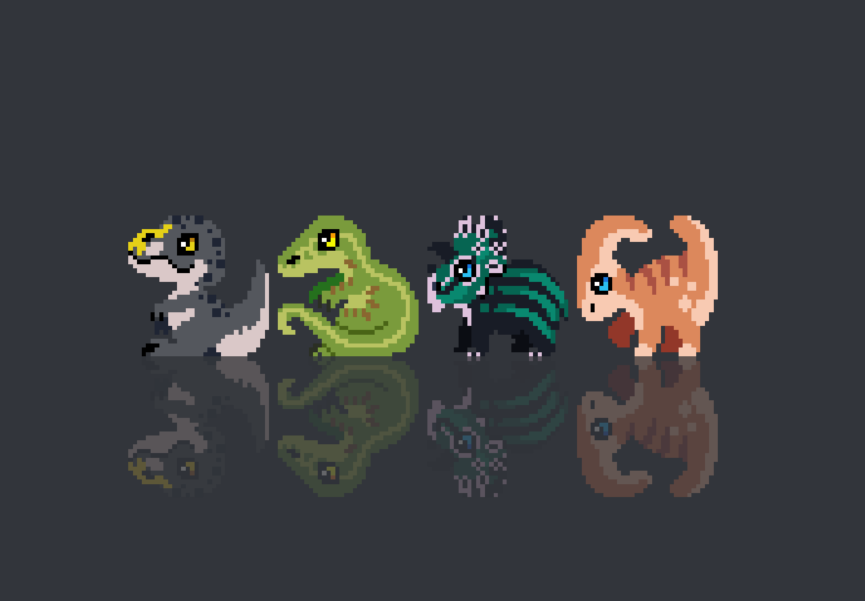 2 8 Dinosaur YCH minis! Having a lot of fun making these. Going to add more species to the lineup soon. (: $10 - static // $15 - animated #dinosaurs #pixelart #paleoart 22/04/27 04:28