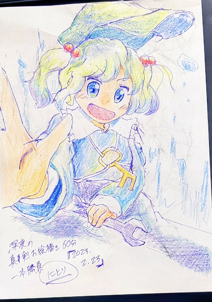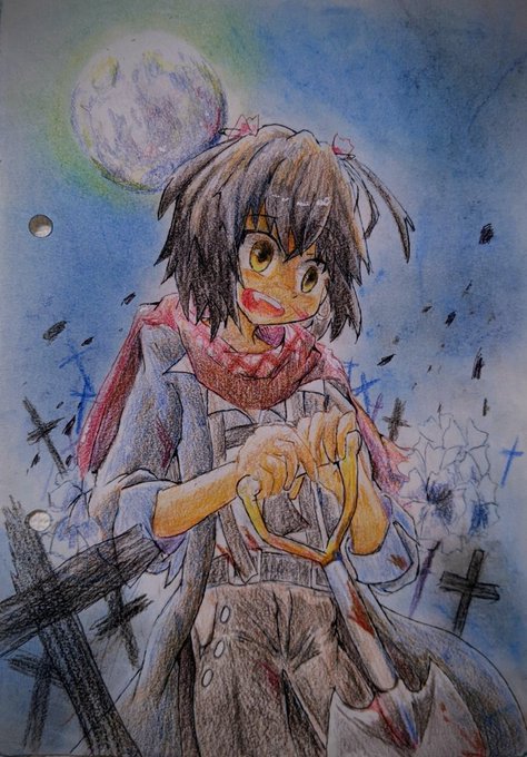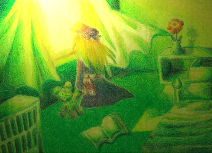 だいぶ遅れましたがぺるさんバトンありがとうございます😊 8年前にクーピーで描きました(裏紙) この時期の絵は練習しても二度と描けないだろうし超えることもできないだろうなってくらいお気に入りです #引用RTで絵をあげて5人指名してバトンでお気に入りの絵を載せる