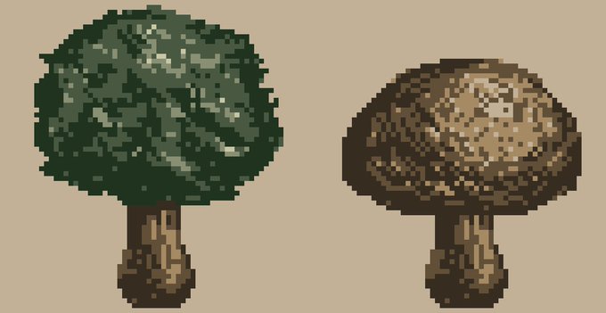 tree and mushroom #pixelart #pixaki #drawing #ドット絵