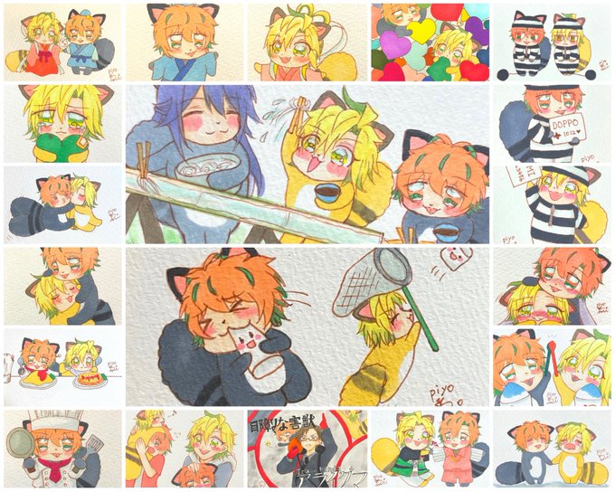 #今月描いた絵を晒そう もう明日で8月も終わりですね🌻 なんかいっぱい描いてる気もするけど全く描いてない気もするのは…単に疲れてるから?( ̄▽ ̄;) 来月はハンドメイドメインになる可能性もあるけど…今はイチャイチャしたアライグマ達が描きたい‼️どひよ、幸せであれ(´°̥̥̥̥̥̥̥̥ω°̥̥̥̥̥̥̥̥`)