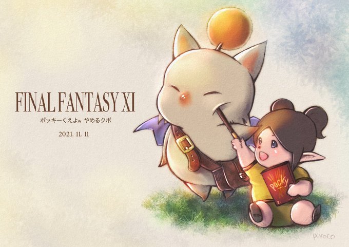今日は11/11イレブンの日! 世間的にはポッキーの日みたいなのでポッキーも入れて描きました!マスターレベルでイレブンが盛り上がってて嬉しいけど辛い #FF11 #ポッキーの日 #FF11イラスト