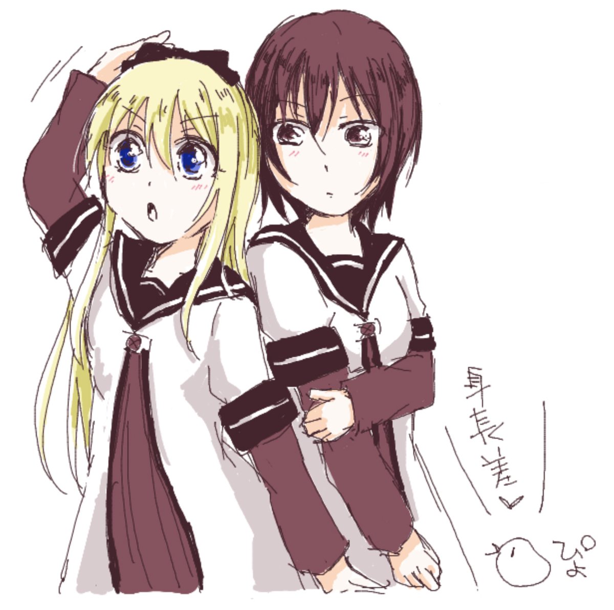 #ゆるゆり版深夜の真剣お絵描き60分一本勝負 「身長差」 結衣さんはきっともう少し伸びると思うの🤔 開催時間都合あわなくて絵チャで描いたやつだけど大体60分なはず…慣れないツールはむずいー