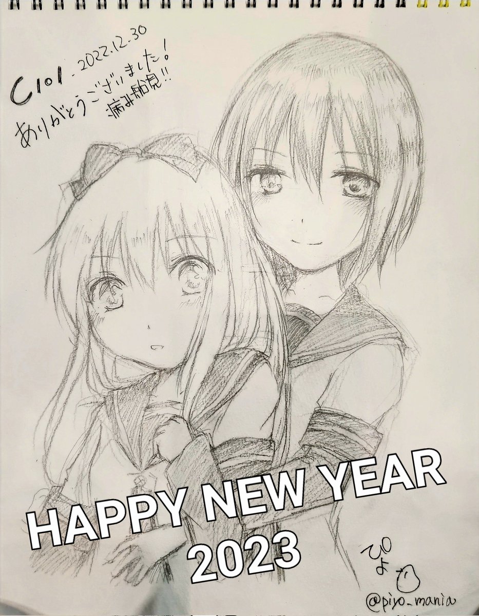 あけましておめでとうございます〜 画像はコミケで描かせていただいたスケブ結京ちゃん! 病み船見はお楽しみいただけたでしょうか? 今年も闇のゆらーとして生きていきますのでよろしくお願いします😇🔪💥