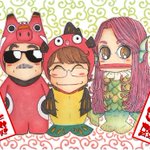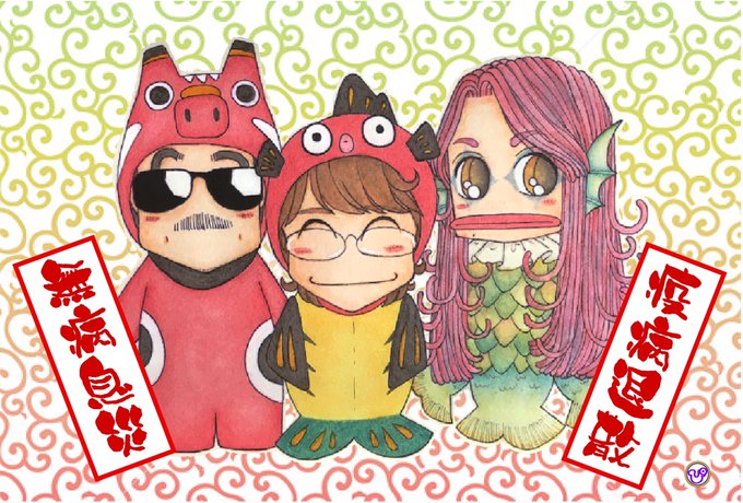 NHKホールのご挨拶用に描いたカード、大好きみなさんにお渡しできない😭 だからインスタとここに載せちゃう♡ #疫病退散 #無病息災 #アマビエタカミー #黄鮒幸ちゃん #赤べこ櫻井さん