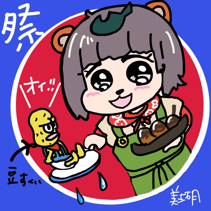スーパーボールすくいより 豆すくいが得意なぽんぽこさん🤣 オマツリイキタイ #ぽこあーと #オシャレになりたいピーナッツくん #ぽこぴー