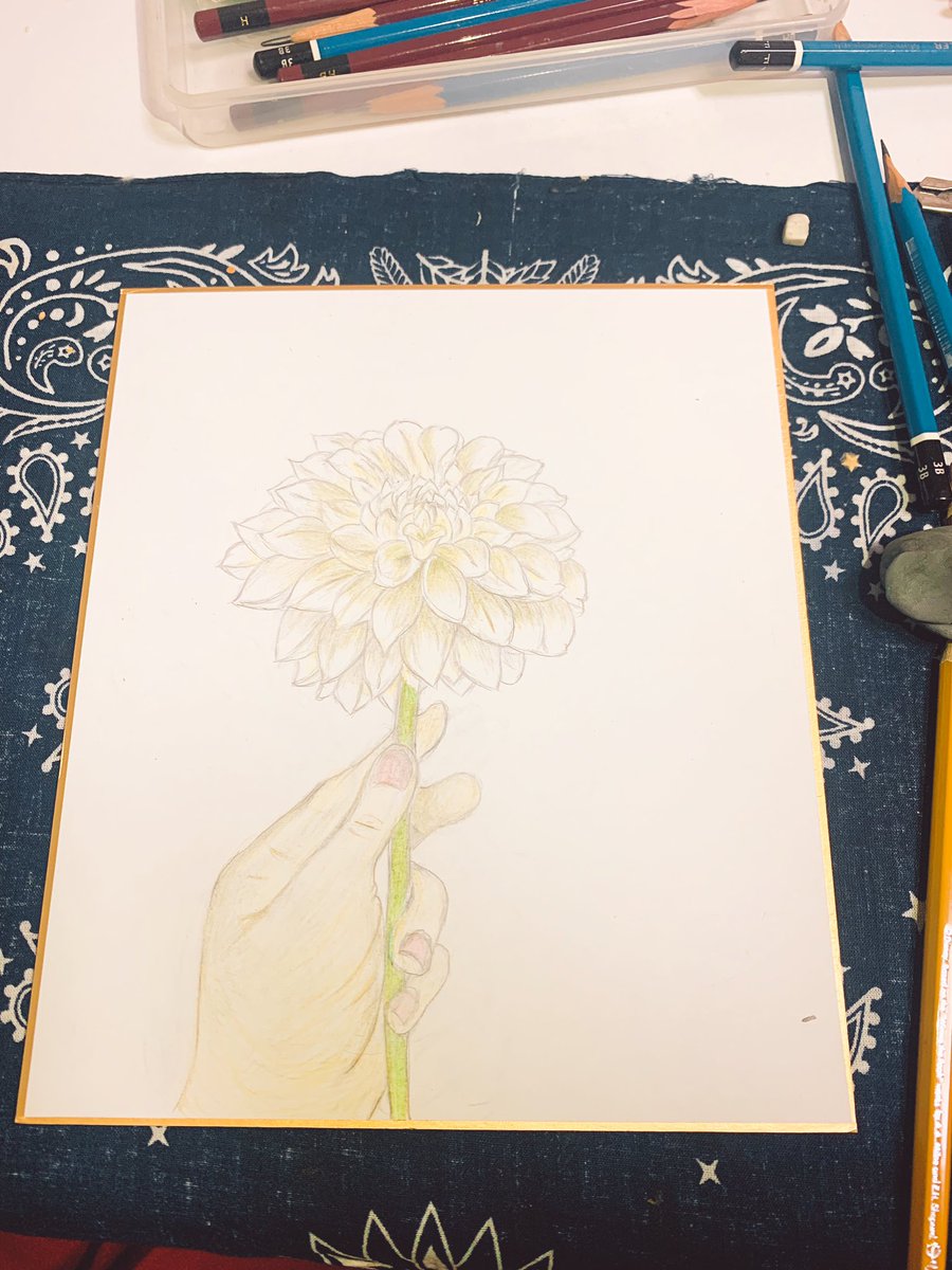ダリア描いたった #ダリア #鉛筆 #色鉛筆 #デッサン