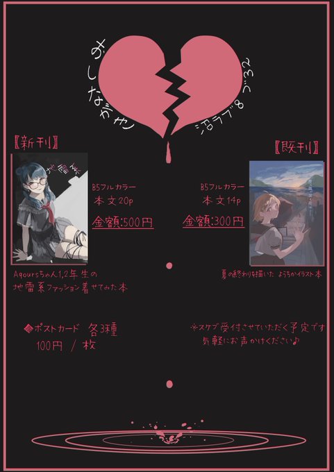 お品書きです🙌 ポストカードいい感じなのでぜひ観にきてね、スケブも久々だけど頑張りたい!