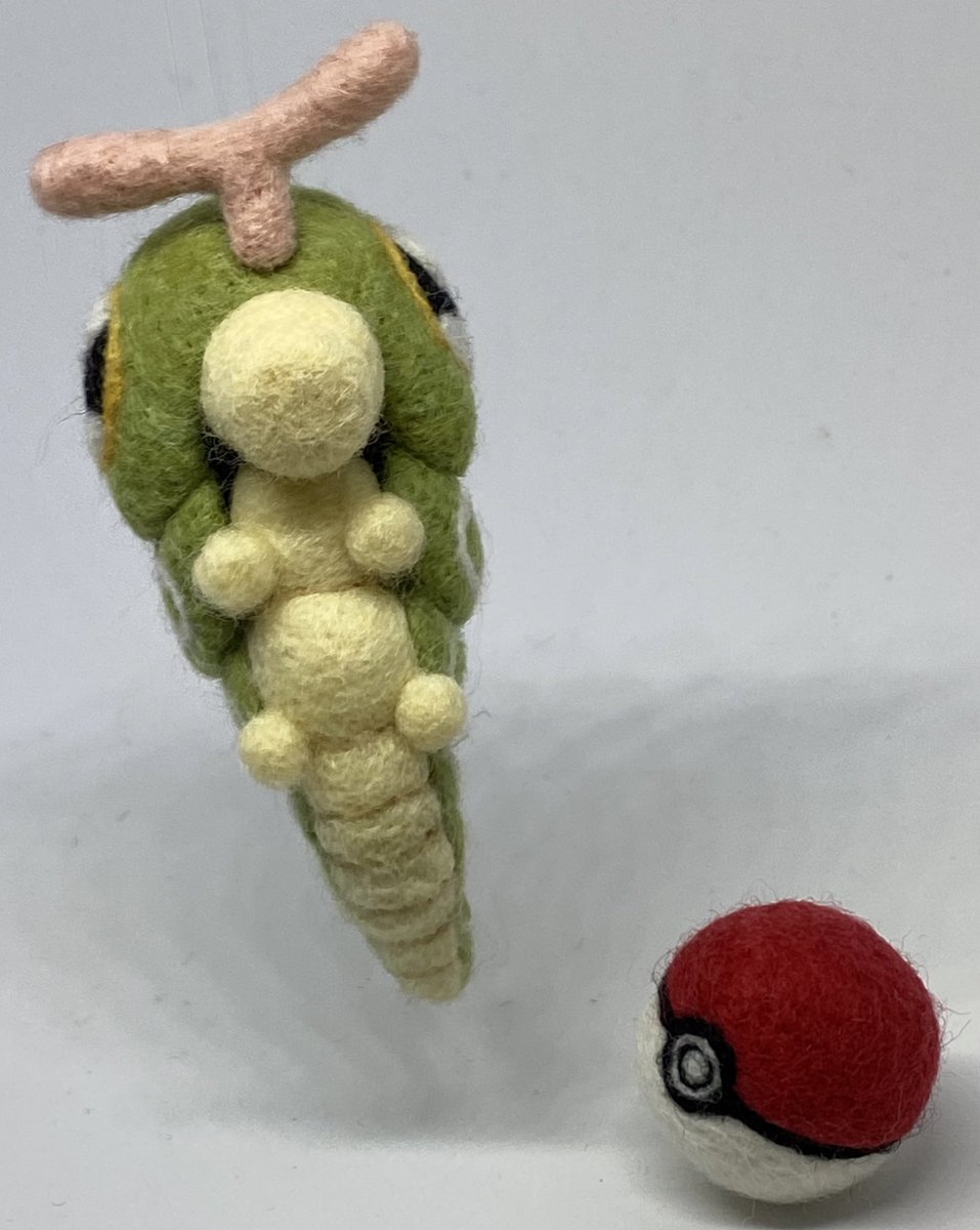 0 2 カスミの一言に傷ついた お目目うるうるキャタピー🤣 無印キャタピーだから、今と色がちょっと違うんだよね🤔 当時は何も思わなかったけど、今見たらキャタピーめっちゃ可愛い…🤦♀️💕 #ポケモン #ポケモン手芸部 #羊毛フェルト 21/12/18 17:58