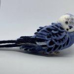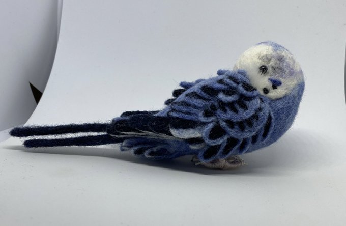 羊毛フェルトでセキセイインコ作った。 数ヶ月前に亡くなったぴーちゃんの写真を見ながら…🥲 羽の枚数多くて分厚くなってしまったけど、我ながら良く出来たと思う🤔 寂しくて作ったけど、見る度にジーン🥲とする。ついこないだまでそこにいたのになぁ…。 #羊毛フェルト