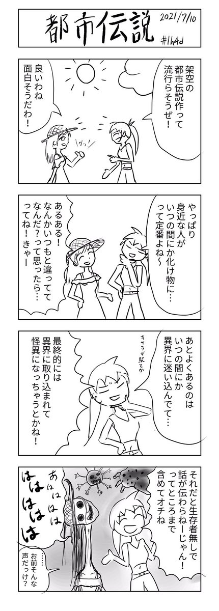 2 18 お題「都市伝説」にて四コマ漫画を描きました #1h4d #4コマ漫画 21/07/10 22:00