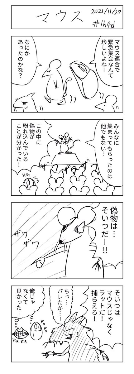 7 188 お題「マウス」にて四コマ漫画を描きました #1h4d #4コマ漫画 21/11/27 21:56