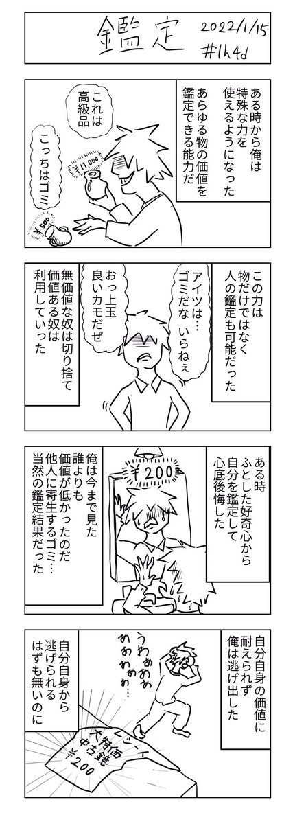 5 50 お題「鑑定」にて四コマ漫画を描きました #1h4d #4コマ漫画 22/01/15 22:04