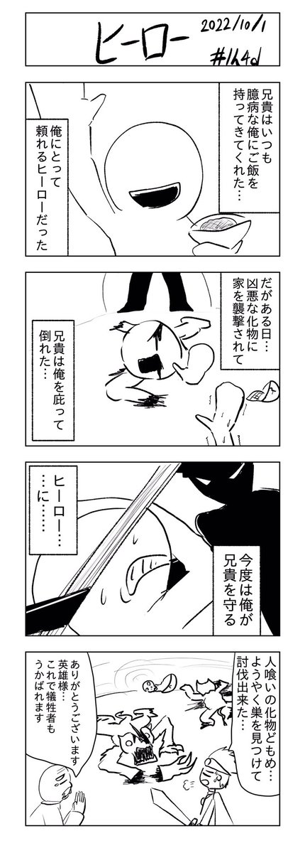 58 435 お題「ヒーロー」にて四コマ漫画を描きました #1h4d #4コマ漫画 22/10/01 22:01