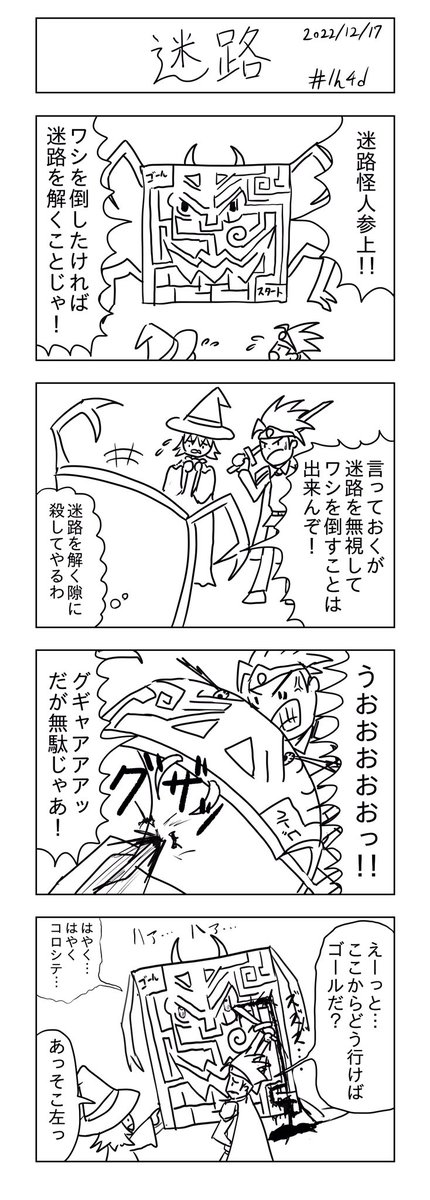 1 16 お題「迷路」にて四コマ漫画を描きました #1h4d #4コマ漫画 22/12/17 22:00