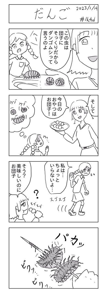 2 14 お題「団子」にて四コマ漫画を描きました #1h4d #4コマ漫画 23/01/14 22:00