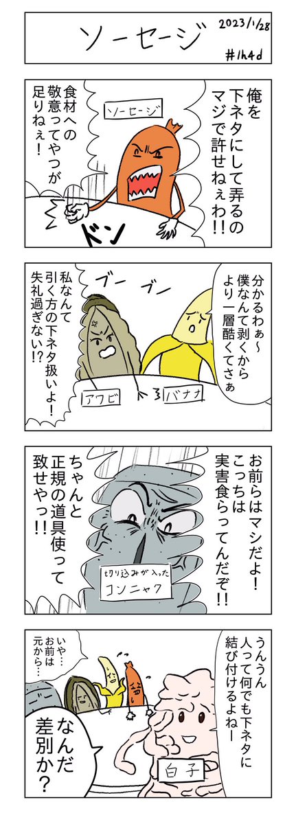 4 19 お題「ソーセージ」にて四コマ漫画を描きました #1h4d #4コマ漫画 23/01/28 21:58