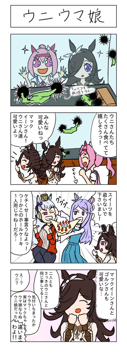 キャベツを食べるウニはカワイイ そしてウマ娘もカワイイ… キャベツウニとウマ娘って…同じなのか!!??? #ウマ娘 #4コマ漫画
