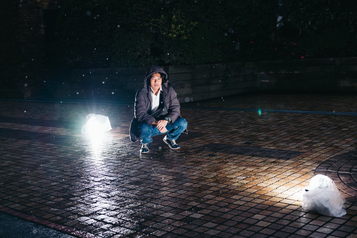 0 2 雨の日の撮影 ストロボ2灯 背後(雨を照らすため) 前(被写体を照らすため) 機材が濡れないようにゴミ袋で覆ってみました まだまだ撮影に改善点がありますが とりあえずよし 撮影 @takuchan401 #アコスタ #a7ii #SEL50FZ 19/12/22 22:41