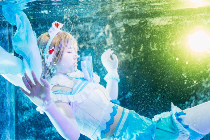 本日のスタジオ撮影 速報 悪魔的に写真がうまい カメラマンよりもレイヤーの体力に感服です そして信頼度がとても大事だと思いました △aina▽ @aina68389419 スタジオ @studioripple00 水槽の後ろから1灯 黄色ケルビン 水槽の上から1灯 白ケルビン #a7ii #スタジオリプル #水中撮影 #コスプレ