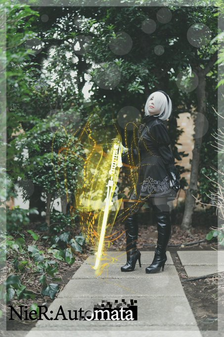 撮影しました😊 ありがとうございます🙇♀️ よくやり込んだ ゲームのキャラだったので 撮影させていただきました 栞那さん @0722_yan #ニアオートマタ #photoshop #アコスタ池袋 #コスプレ ロゴの制作 光の光彩 追加 (武器と全体) 写真の枠追加 目の色 変更 武器の色 変更 全体の彩度 変更