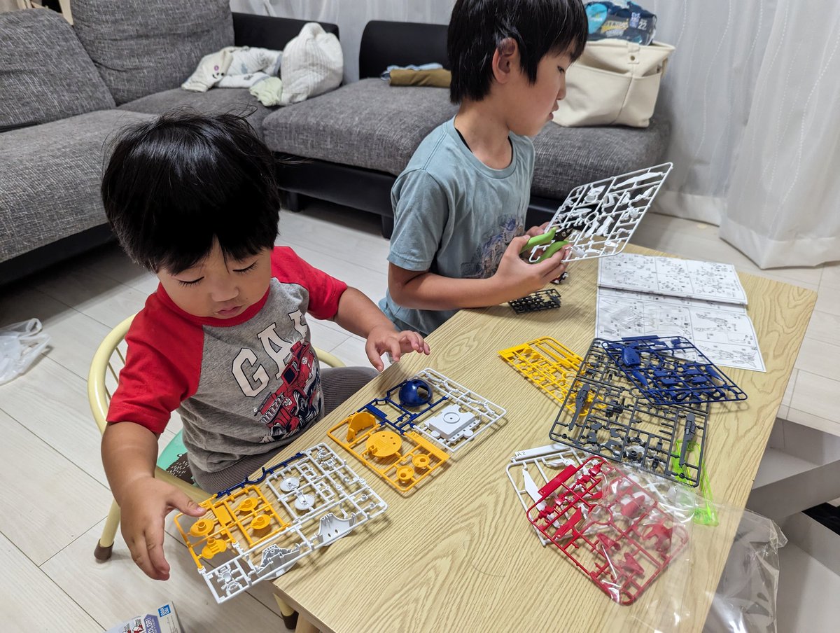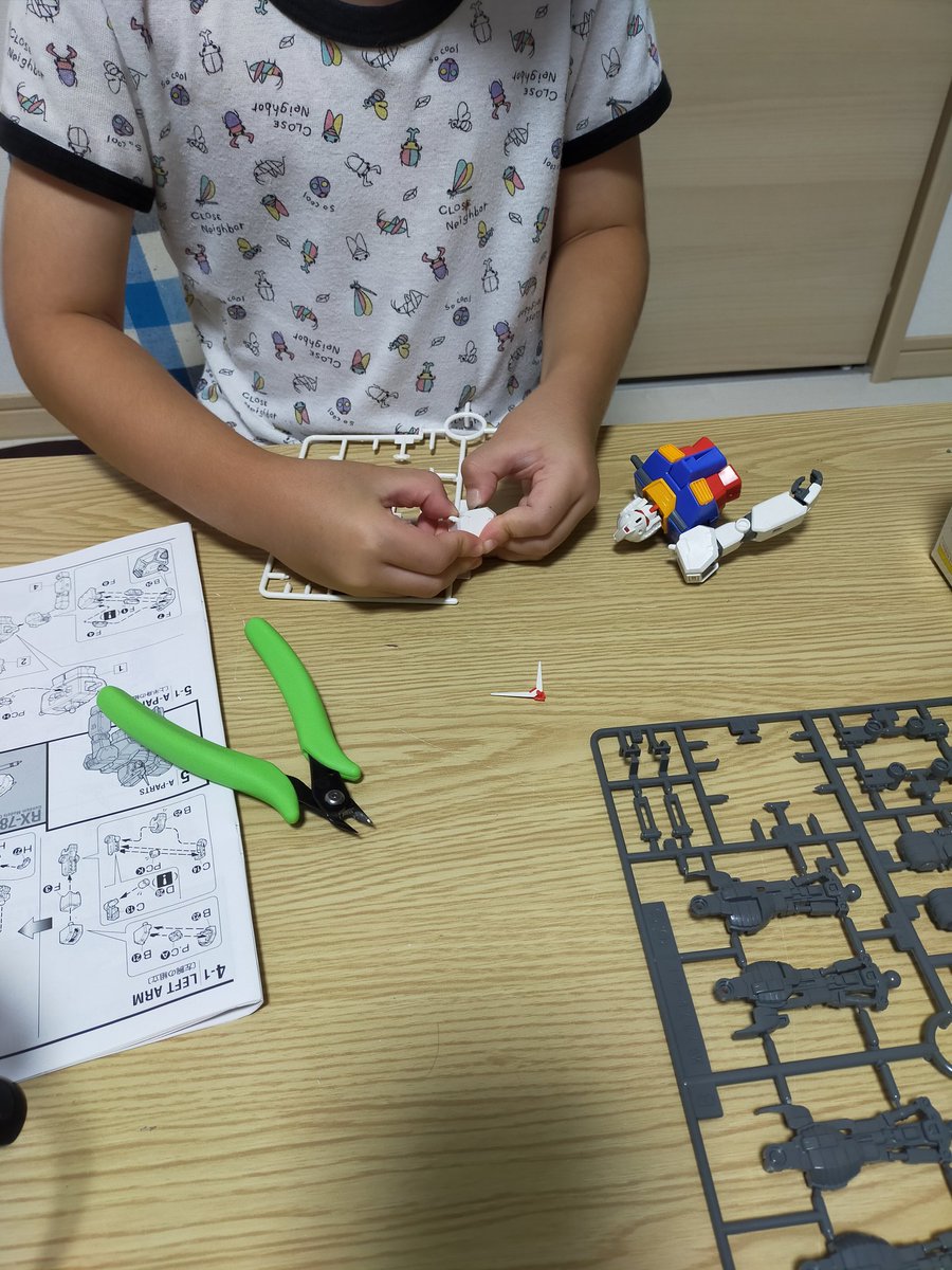 無事息子5歳ゴッドガンダム完成。 4時間もあればHG作れるようになってきた。 課題はいっぱいだけど、自分が5歳の時に観てたガンダムを5歳の息子も観て作ってるの不思議だなぁ #ガンプラ好きな人と繋がりたい