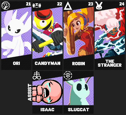Indie Game Smash Bros. Roster Concept - Day 6! #pixelart #pixel_dailies #oriandthewillofthewisps #LethalLeagueBlaze #iconoclasts #furi #thebindingofisaac #Rainworld