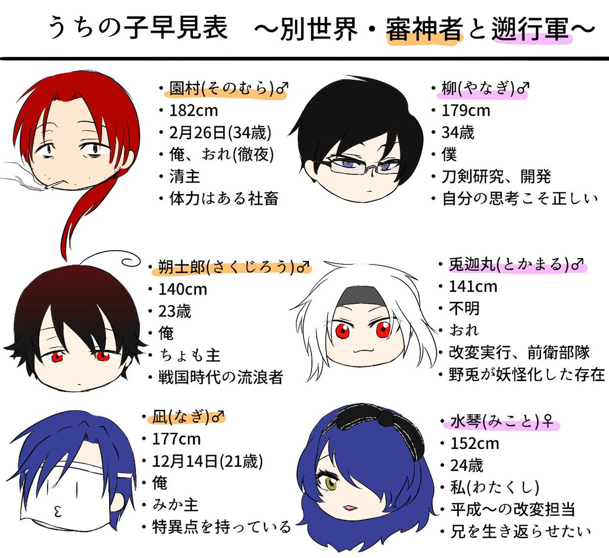 うちの創作審神者や創作刀剣、政府役人、遡行軍などの設定とか載せていくスレッド (大体は刀さに前提) min.togetter.com/id/pkayumu 刀さにとかのネタまとめ一覧 privatter.net/u/pkayumu 創作審神者の設定や動画(リスイン)