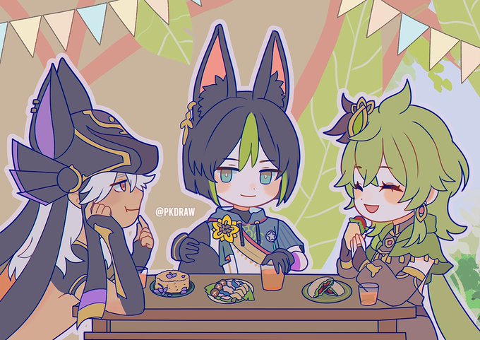 happy birthday, tighnari! 🌿 of course cyno and collei would never allow this day to pass unnoticed so they ended up having a nice meal together 💚 #tighnari #cyno #collei #原神 #GenshinImpactCC #ティナリ生誕祭2022