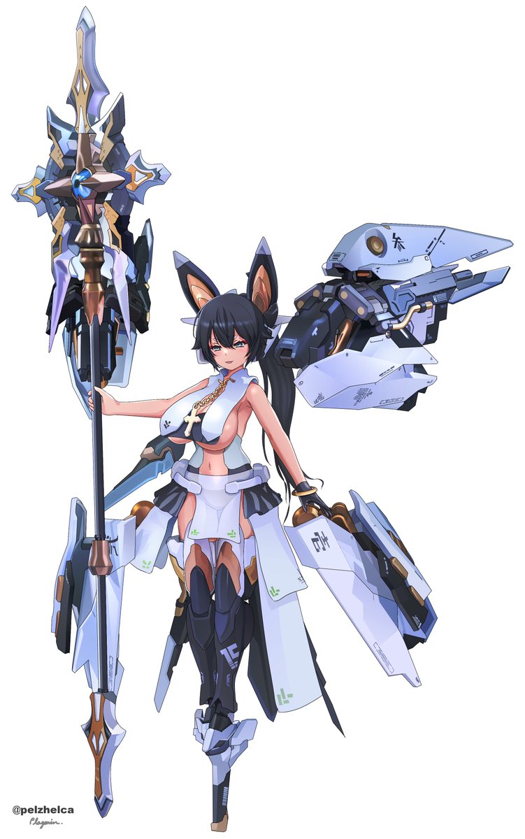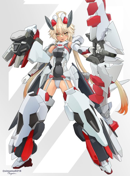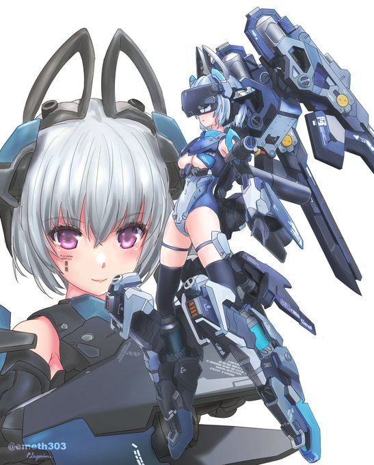 #今月描いた絵を晒そう / 模型作品トレース画 零式弐型厳島/老狼dot様 @emeth303 ランサー殿&君主様/マイアミ様 @miami_hobbies #メガミデバイス #フレームアームズ・ガール