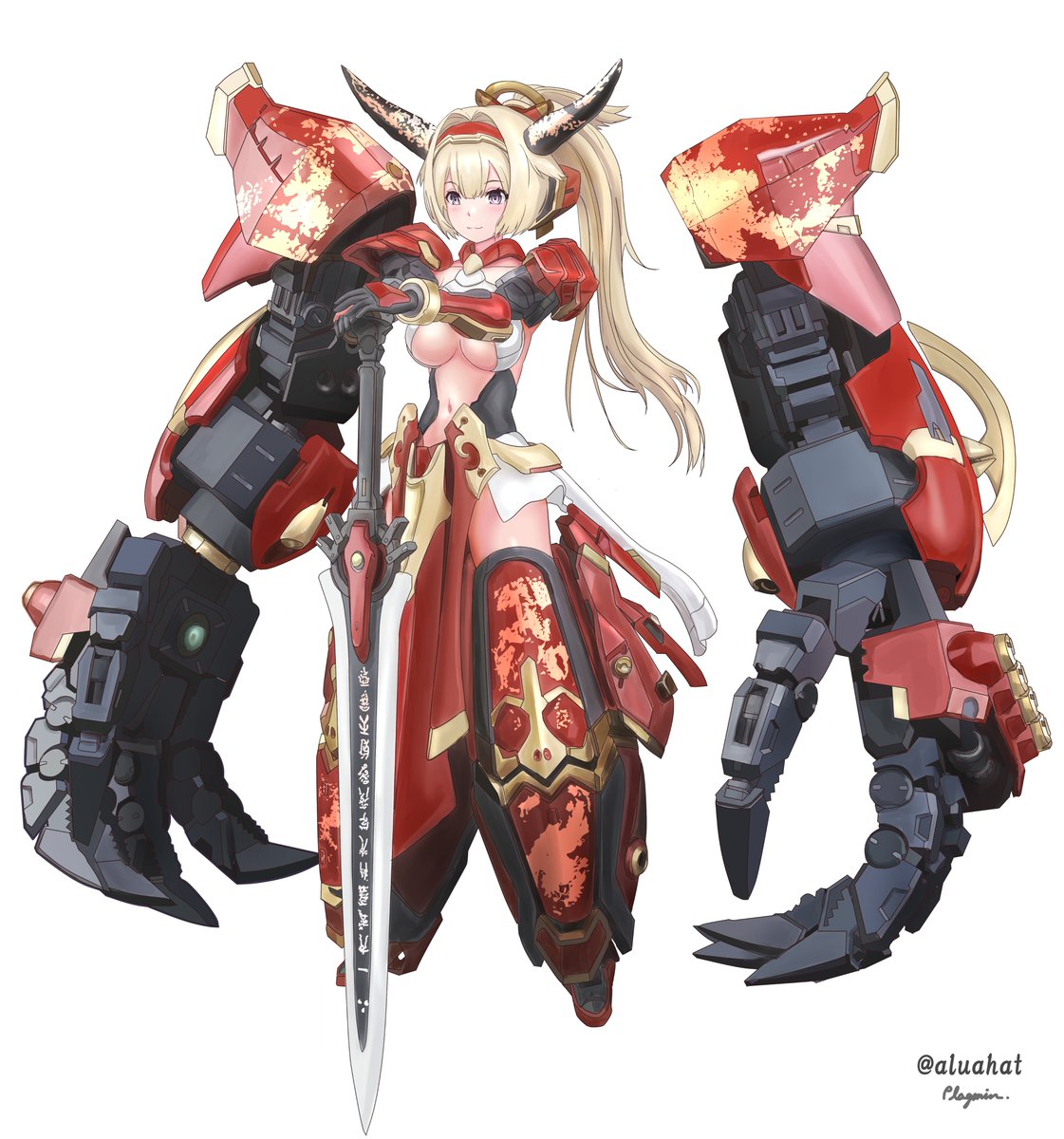 #今月描いた絵を晒そう / 模型作品トレース画 大紅蓮兜跋毘沙門夜叉姫/アルアハト@FLAGSHIPS代表様 @aluahat 聖女と雪_リタッチ2023/ソルト 8383love様 @megami_8383love #メガミデバイス