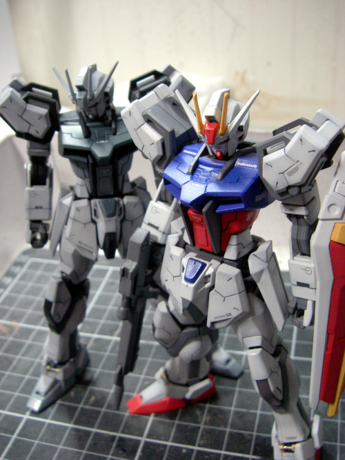 おはようございます☀️ ストライクガンダムまとめて撮りました😃 元々同じ1機と言う脳内設定の為 スジ彫り・デカールの位置は同じです😁 動画も完成したので 後ほどアップ致します😃 #プラモデル #ガンプラ #EG #ストライクガンダム