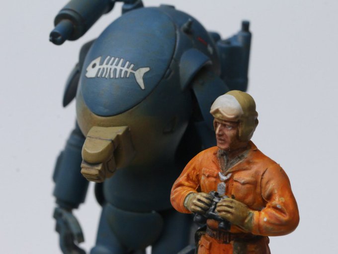 1/35スケールのフィギュアを作る理由は「ガチャーネンと絡ませたいから」が9割! ※諸説あり #パワードスーツ #プラモデルはフィギュアと絡ませるといいらしい #ガチャーネン #マシーネンクリーガー
