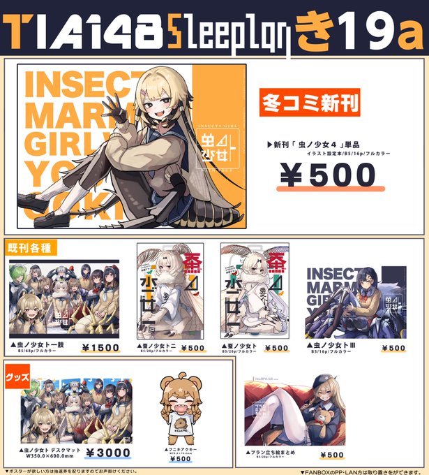 【C103新刊】 「 虫ノ少女トⅣ 」 B5/16p/フルカラー 500円 虫ノ少女トシリーズの第四弾です! 新たにデザインした子たちの設定資料と描きおろしイラストを収録しております! ▷メロンブックス (イラストカード付) melonbooks.co.jp/detail/detail.… ▷DLsite dlsite.com/home/announce/…