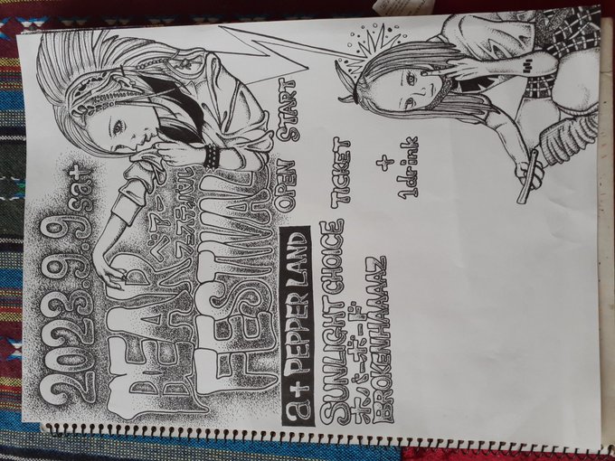 0 9 ベアフェス、蓮獄決まりました! チケットは1500円の1ドリンク600円です! かっちょいいバンドまだまだ検討中! #illustration #イラスト #ミリペン #ペン画 #ライブ #バンド 23/05/19 18:25