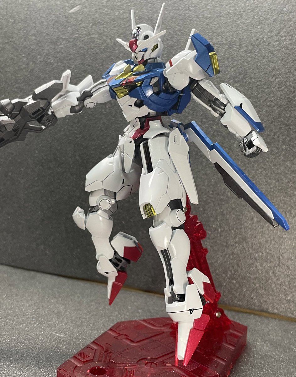 GUND-ARMエアリアル完成〜 パチ組みで充分な完成度❗️ 塗ったけど(爆)😆 バンダイさんの最新技術に乾杯🥂 #水星の魔女 #ガンプラ好きとつながりたい #ガンプラの画像貼るとRTされると聞いて #エアリアル