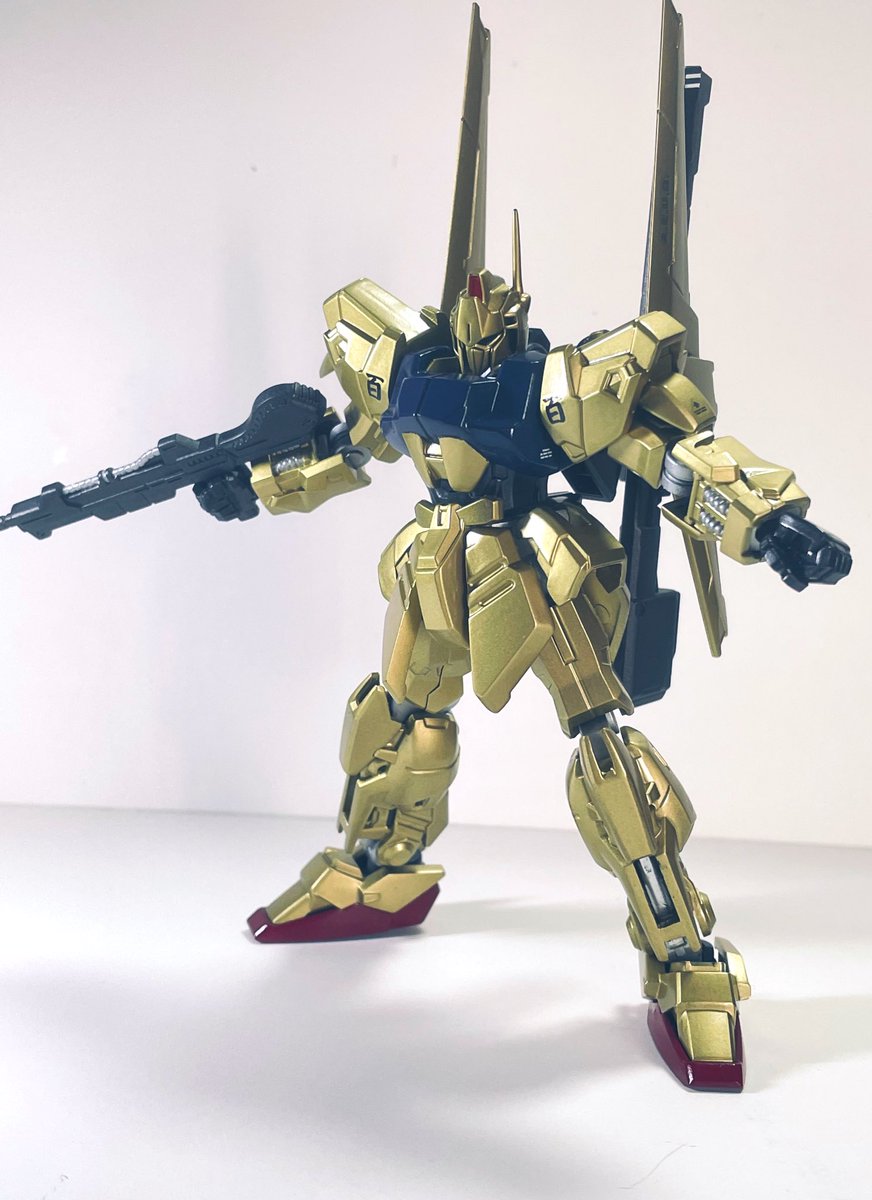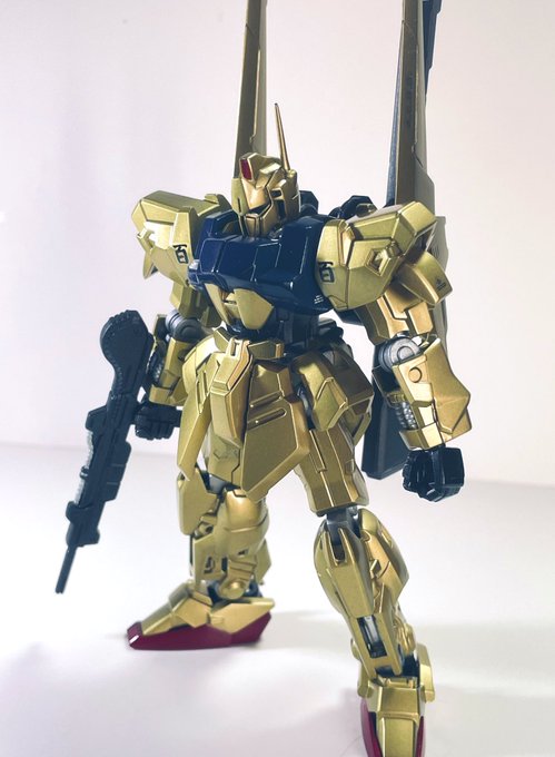 GフレームFA 百式出来ました😄 クレオスのGXブルーゴールドで全塗装仕上げです。作っててMGが欲しくなってきたよww #ガンプラの画像を貼るとRTされると聞いて #ガンプラ好きと繋がりたい #ガンプラ