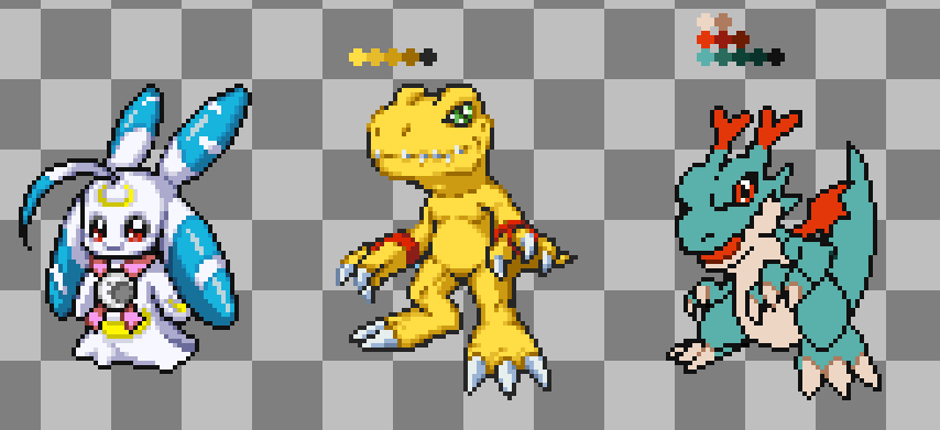 u ppl may think that because of my rush spriting them i love the labramon line LOL but i'm mostly just excited for survive! the lunamon and lopmon lines are my favorites and guilmon comes close #digimon#pixelart