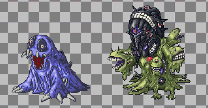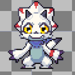 first draft (ew) versus latest draft. now that i have some pixel artist followers, anyone know how to accurately portray petitdramon's mouth using such a small area? i did my best but... i think it could be better. i can dm you the original size if u wanna try #digimon#pixelart