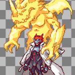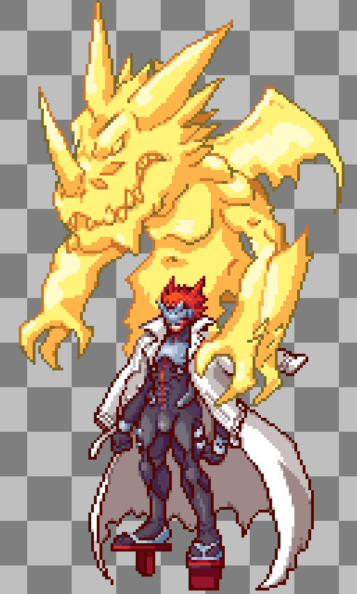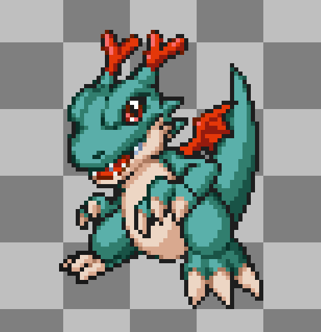 DRACOMON IS DONE! Special thanks to @paburo1 for fixing several things about the sprite that were giving me a lot of trouble. If there were to be a Digimon Dawn/Dusk Redux, I'd want Dracomon to be your essential "starter." :> #digimon#pixelart