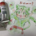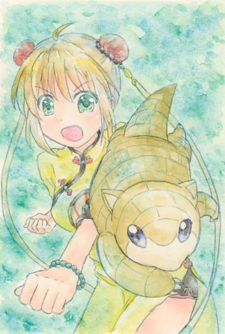 ユイちゃん(とサンド) リクエストありがとうございました! …上海華撃団の機体サンドみたいだなってずっと思ってて…まさか龍だなんて…しっぽあって頭丸いしサンドじゃん…? #サクラ画廊 #透明水彩