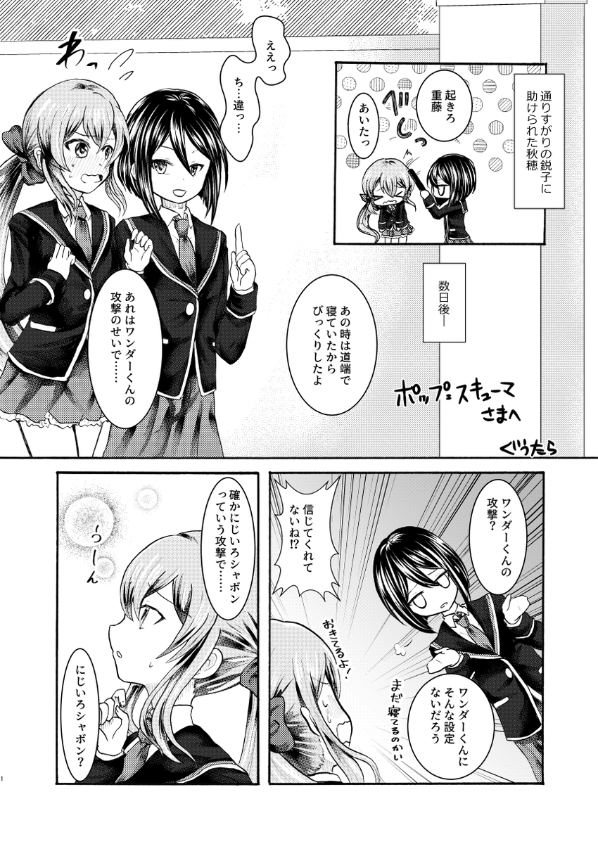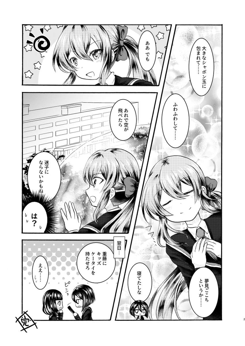 8 19 女子高生ふたりとシャボン玉と風船 skebご依頼ありがとうございました~! 普段二次創作しかしてこなかったので、一から考えるの難しい~勉強になりました…! しばらくskeb閉じておく予定です。春に出したい本が完成した頃に開きます… 22/12/25 19:00
