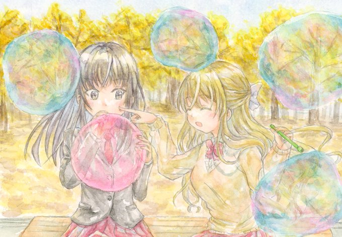 女子高生ふたりとシャボン玉と風船 skebご依頼ありがとうございました~! 普段二次創作しかしてこなかったので、一から考えるの難しい~勉強になりました…! しばらくskeb閉じておく予定です。春に出したい本が完成した頃に開きます…