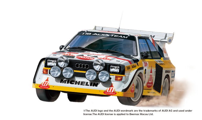 【本日発売】迫力のグループBアウディがビーマックスから発売。 1986年のモンテカルロラリー仕様を1/24で再現。 大型のリアウイングや前後フェンダーなどフォルムが魅力。 ■BEEMAX 1/24 シリーズ アウディ スポーツクワトロ S1[E2] 1986 モンテカルロ ラリー 4,620円 (税込) bit.ly/3tsWTFF
