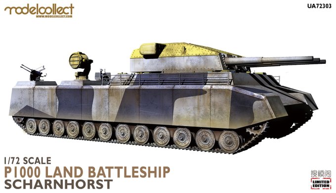 【新発売】モデルコレクトから超大型キットが発売。 大戦中のドイツ計画戦車、P1000ラーテ”シャルンホルスト砲塔”使用を1/72でモデル化。 戦艦の砲塔を搭載した迫力戦車。 ■1/72 ドイツ軍 陸上巡洋艦 P.1000 ラーテ w/シャルンホルスト砲塔 1945年 限定版 18,150円 (税込) bit.ly/3BA1nyd