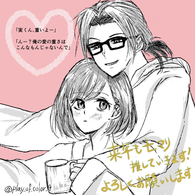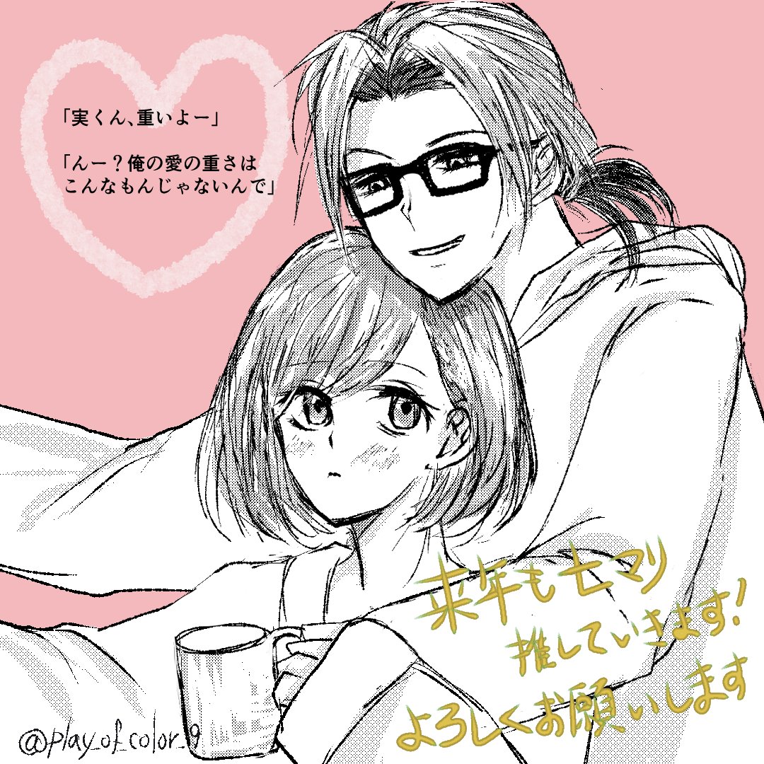 # 今月描いた絵を晒そう もう1月終わっちゃうのか…。七ツ森くんとツーショットイラストから選んでみた。 お正月絵は年跨ぎだけど。