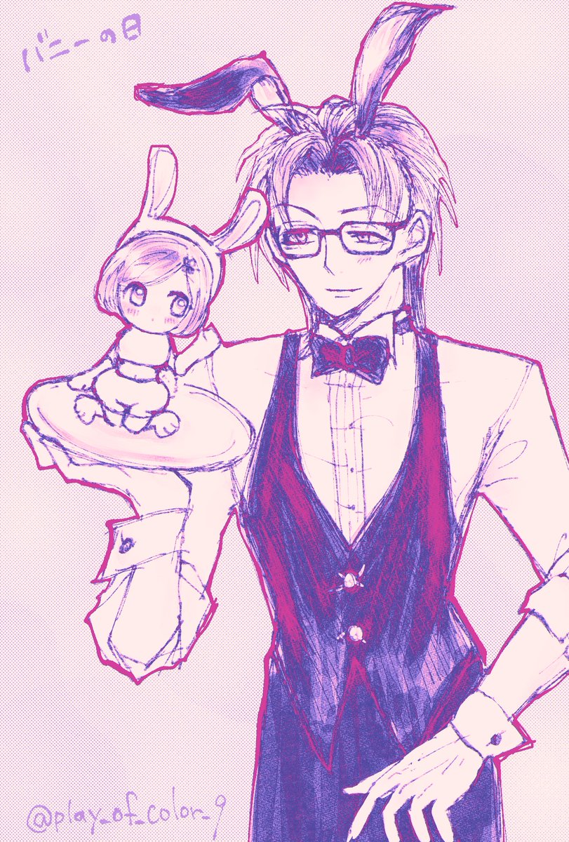 漫画の続き頑張ろうとしてたんだけど今日はダメダメだったので結局落書きしちゃったよ…。 うさぎ年の間にうさ耳ツ森くんたくさん描きたいね🐰