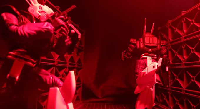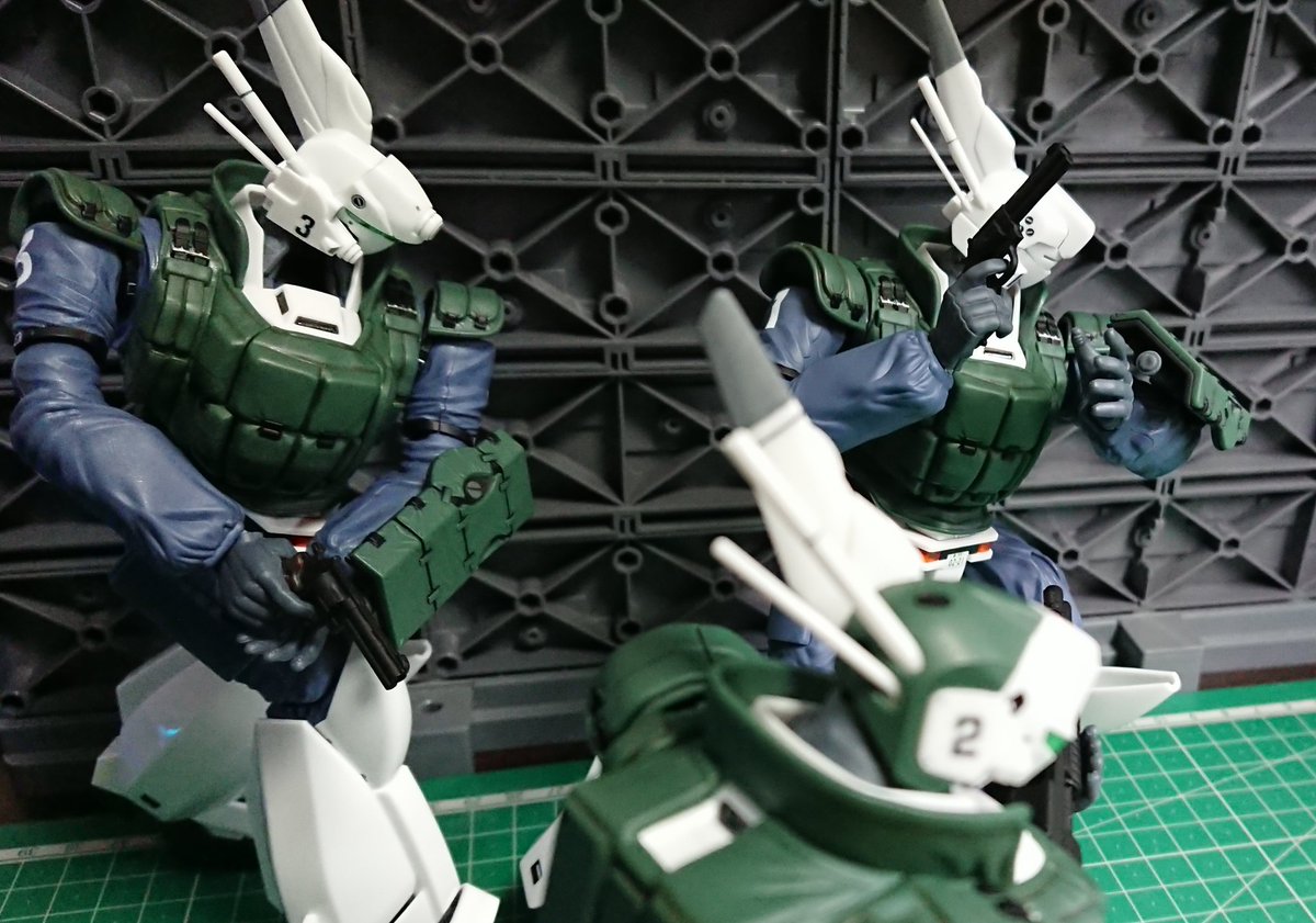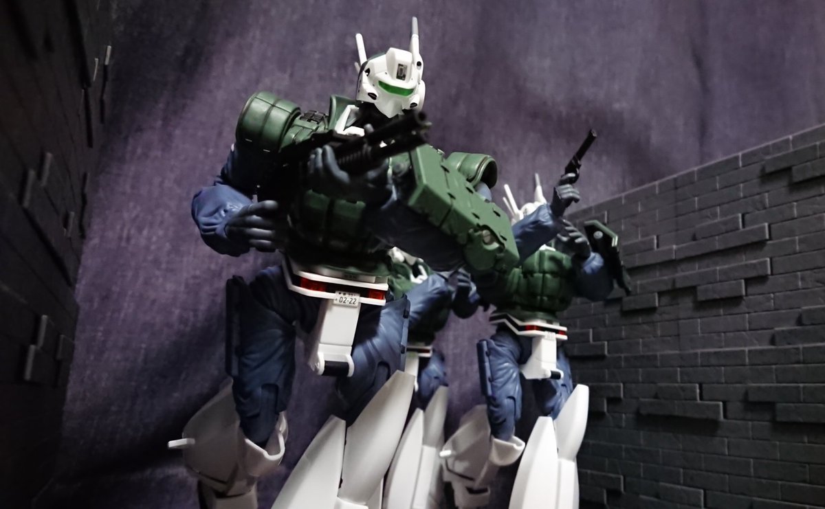 アオシマ リアクティブアーマー 「ゴタゴタ言っても…始まるかぁああ‼️‼️」「…あたしも行きます‼️」「…しょうがない❗ひろみ‼️撃ちまくれー‼️」 レイバーライフルを持ってたので急遽友情出演です。 #パトレイバー模型部