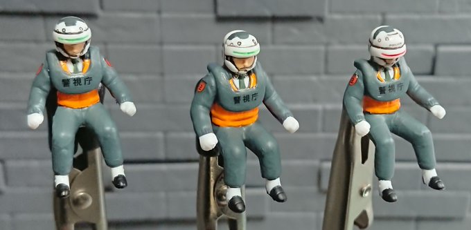 アオシマ リアクティブアーマー 色々と後回しにしてた金具やら、はみ出した部分の修正を終わらせつつ全員搭乗させました。太田が一番飛び出してますね。当時は気づきませんでしたが最近高画質で見直してたら最初の攻撃の時に太田さん顔出してたんですね…からの神回避すごすぎです #パトレイバー模型部